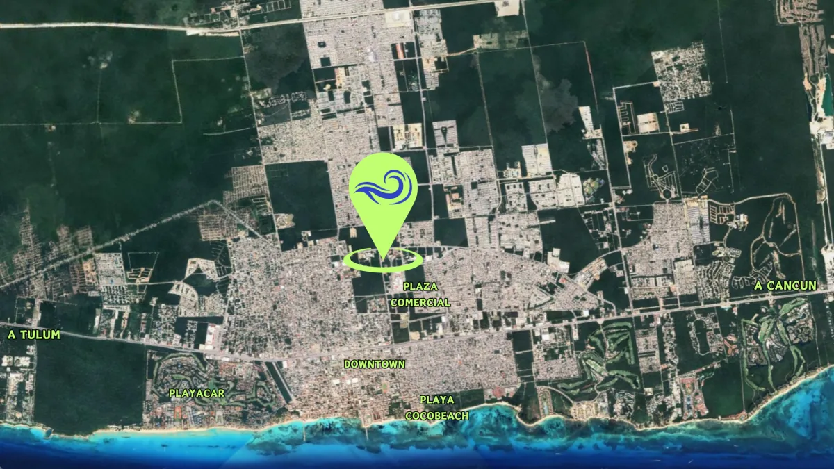 Ubicación privilegiada en el corazón del pueblo de Playa del Carmen, con todos los servicios al alcance caminando y a solo 7 minutos del mar Caribe.